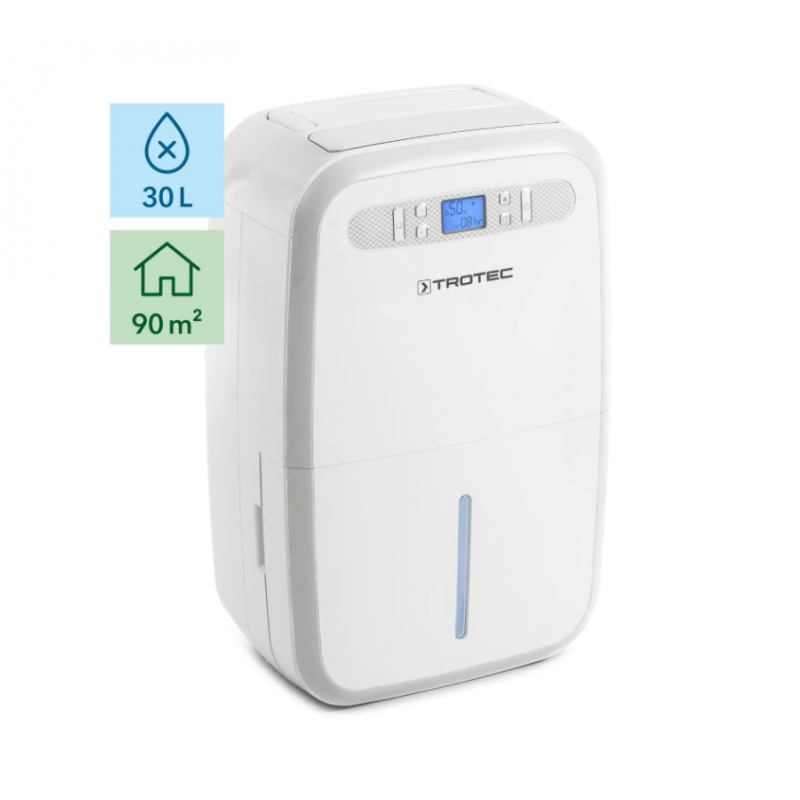 Мощный бытовой осушитель воздуха TROTEC TTK 95 E - это надежный и эффективный осушитель воздуха, поддерживает сухость помещений площадью до 90 м² и ежедневно конденсирует до 30 литров влаги из воздуха помещения.