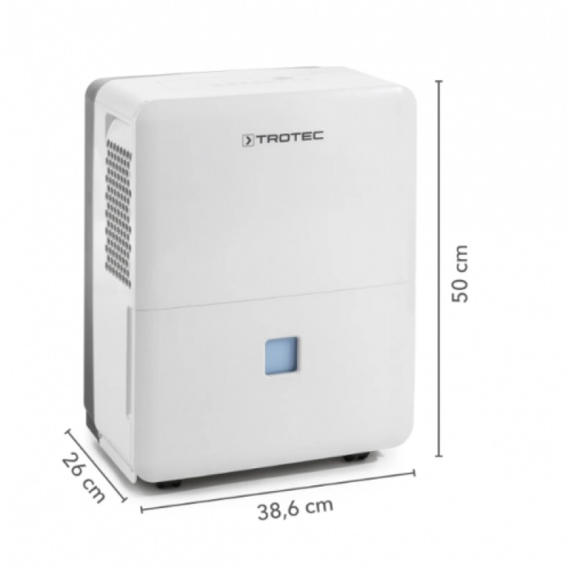 Осушитель для бытового применения Trotec TTK 96 E - одна из наших лучших рекомендаций для высококачественного осушения воздуха. TTK 96 E сочетает в себе лучшие функции современного осушителя в удобном корпусе с расширенным функциональным оборудованием и мощное осушительное устройство благодаря высоким эксплуатационным характеристикам. Этот агрегат полностью контролирует влажность воздуха в любом жилом или офисном помещении площадью до 90 м2. Этот осушитель является универсальным и оптимальным: для гостиной, отеля, пансионата, дачи, для ванной комнаты и прачечной, для подвала, гаража, для архива, лаборатории, раздевалки, для склада или офиса, сауны, спортивного зала. Модель отличает мощная осушающая способность - до 30 литров конденсата в день.