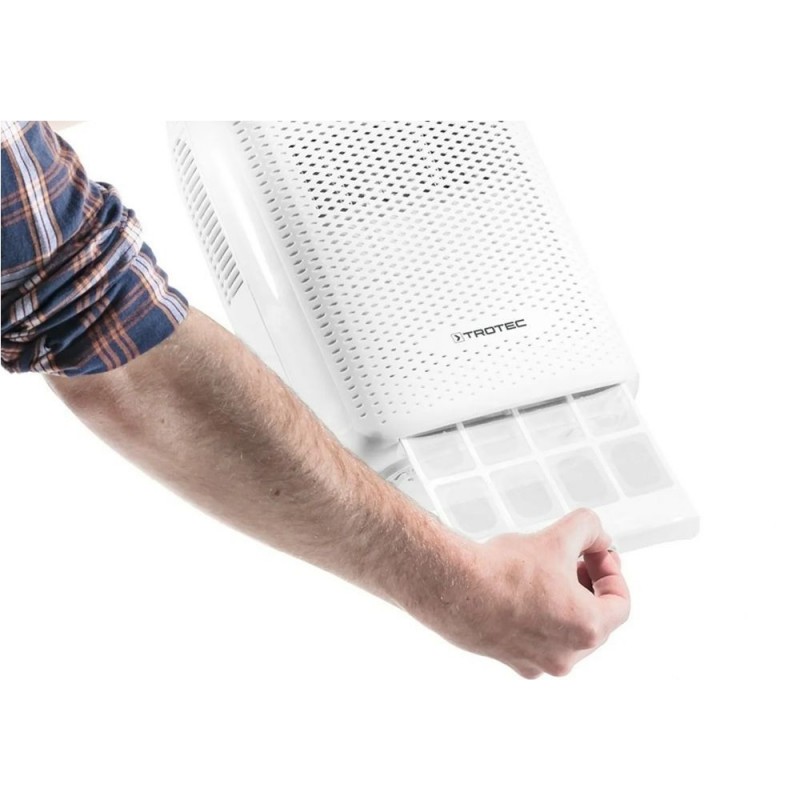 Осушитель Trotec TTP 10 E эффективно удаляет сырость и неприятные запахи, предотвращает оседание конденсата и развитие плесени. Прибор отличается экономной и неслышной работой. Идеально подходит для плохо проветриваемых помещений. Прибор легко включить, светодиодная подсветка подтверждает подключение к сети. Осушитель оснащен воздушным фильтром, улавливающим пух, пыль, шерсть животных. Фильтр многоразового пользования легко очищается. На корпусе есть удобная ручка для переноски. Конденсат собирается во встроенном резервуаре емкостью 2 литра. При заполнении бака осушитель автоматически отключается, после установки пустого бака - включается вновь в работу.