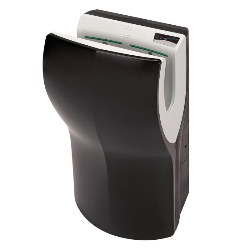 Сушилки для рук Dualflow® Plus автоматические с инновационным дизайном в черном цвете. Dualflow® Plus являются частью нового поколения сушилок с новой революционной конструкцией, модели, которые обеспечивают экономию энергии и ультра - быстрое высыхание. Предотвращает попадание брызг воды на пол. Благодаря инновационной конструкции двигателя, происходит экономия электроэнергии до 73 % по сравнению с другими сушилками в своем классе. Кроме того, мощность двигателя является регулируемым, с минимумом 420 Вт и не более 1100 Вт.