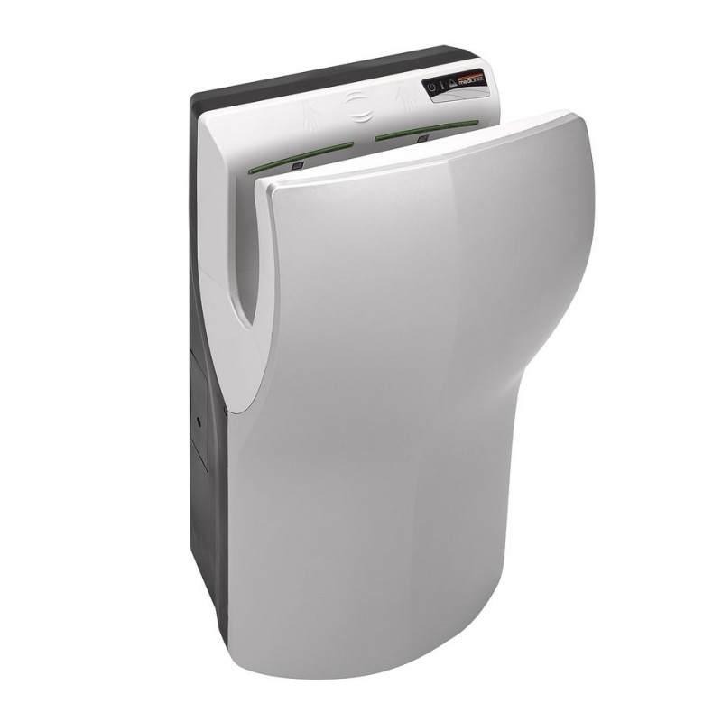 Сушилки для рук Dualflow® Plus автоматические с инновационным дизайном в сером цвете. Dualflow® Plus являются частью нового поколения сушилок с новой революционной конструкцией, модели, которые обеспечивают экономию энергии и ультра - быстрое высыхание. Предотвращает попадание брызг воды на пол. Благодаря инновационной конструкции двигателя, происходит экономия электроэнергии до 73 % по сравнению с другими сушилками в своем классе. Кроме того, мощность двигателя является регулируемым, с минимумом 420 Вт и не более 1100 Вт.