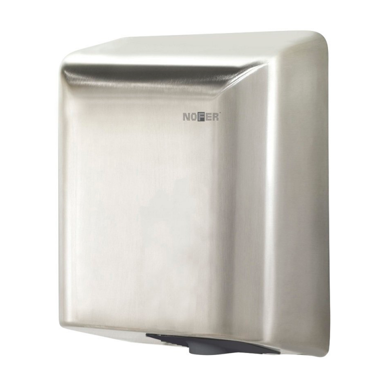 Высокоскоростная сушилка для рук FUGA имеет двигатель, работающий на высоких оборотах, максимальное значение которых доходит до 35000 об/мин. Скоростная сушилка идеально подойдет для мест с большой проходимостью. У данной модели отсутствует нагревательный элемент и установлен достаточно мощный двигатель. Автоматическая сушилка оснащена инфракрасным сенсором,он срабатывает на расстоянии от 10 до 50 см. Так же имеет прочный корпус из ABS пластика, без острых углов. Nofer FUGA имеет систему защиты IP X1, это означает, что прибор надежно защищен от попадания капель воды.