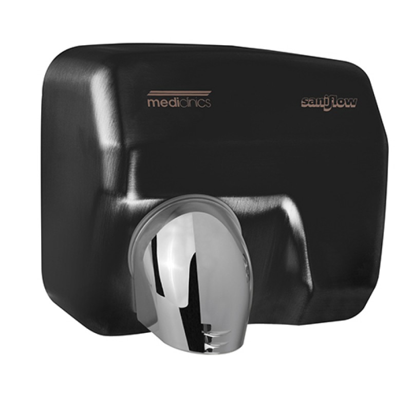 Автоматическая сушилка Saniflow® – выполнена из стали, окрашенная в черный цвет толщиной 1,5 мм. Представляет собой компактное устройство с вращающимся соплом, которая наиболее широко используется в мире, независимо от места установки. Эти машины также отличаются простотой обслуживания, низким уровнем шума и высоким уровнем безопасности пользователя. В сочетании с продуманной конструкцией компонентов осушители SANIFLOW обладают самым мощным воздушным потоком в мире, что в сочетании с комфортной температурой сушки сокращает время сушки до минимума.