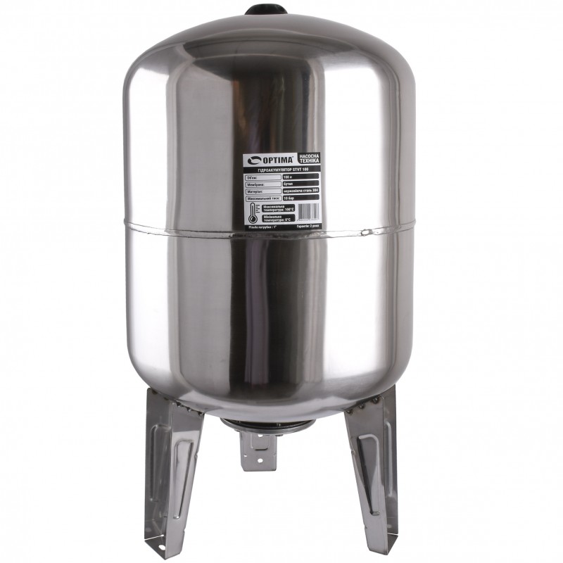 Гідроакумулятор 100 л 10bar нержавійка Країна виробництва - Китай Об'єм -100 л. Тип - вертикальний Застосування - питна вода, насоси і установки підвищення тиску. Використовуються з будь-якими типами дренажних і відцентрових насосів і установками підвищення тиску, а також захищають від гідроударів і знижують енергоспоживання.