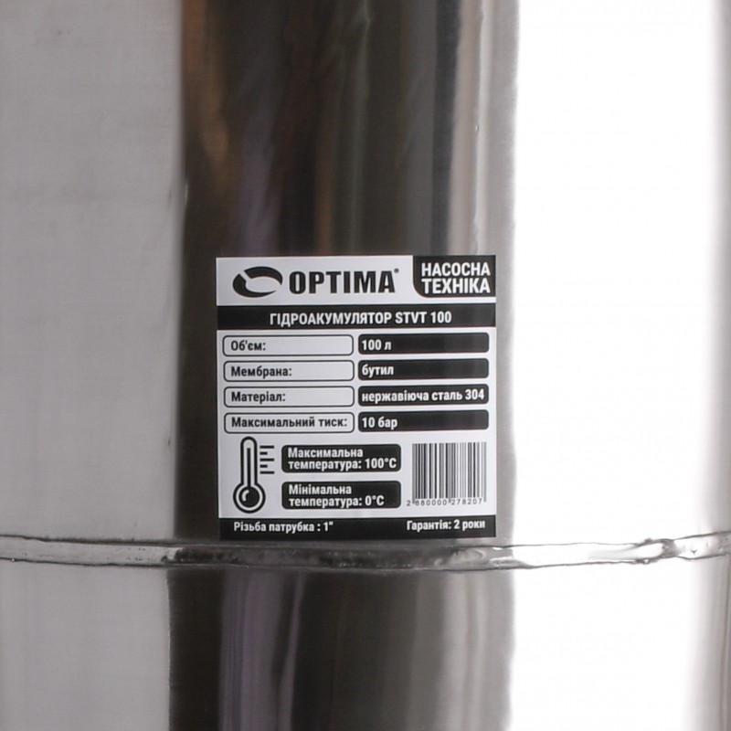Матеріали гідроакумулятора: Корпус - нержавіюча сталь Мембрана - EPDM Діаметр підключення - 1″ Технічні характеристики: • максимальний робочий тиск: 10 бар робоча температура: -10 ° С до + 99 ° С • встановлений тиск: 1,5 бар