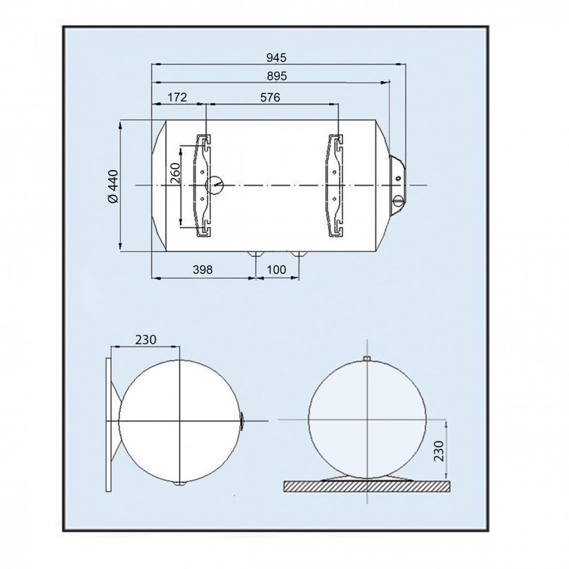 Водонагрівач LH Dry 100 l LEOV сухий горизонтальний