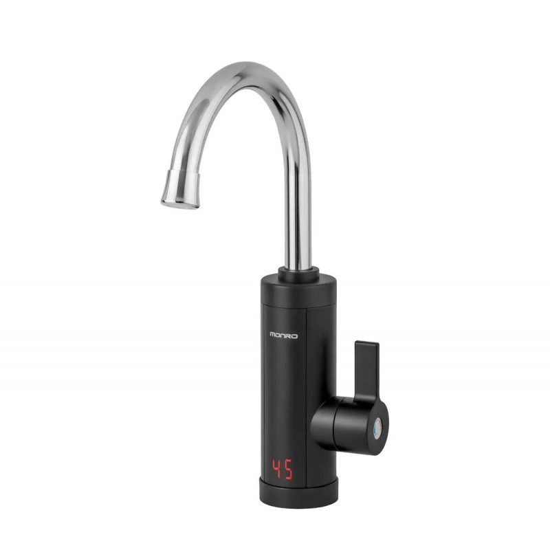 Електричний проточний водонагрівач MONRO LZ-503 XH корпус чорного кольору виготовлений з нержавіючої сталі, а також на корпусі є індикатор температури гарячої води. Він мінімізує витрату води, забезпечує швидке нагрівання води, легко встановлюється, заощаджує місце та енергію.