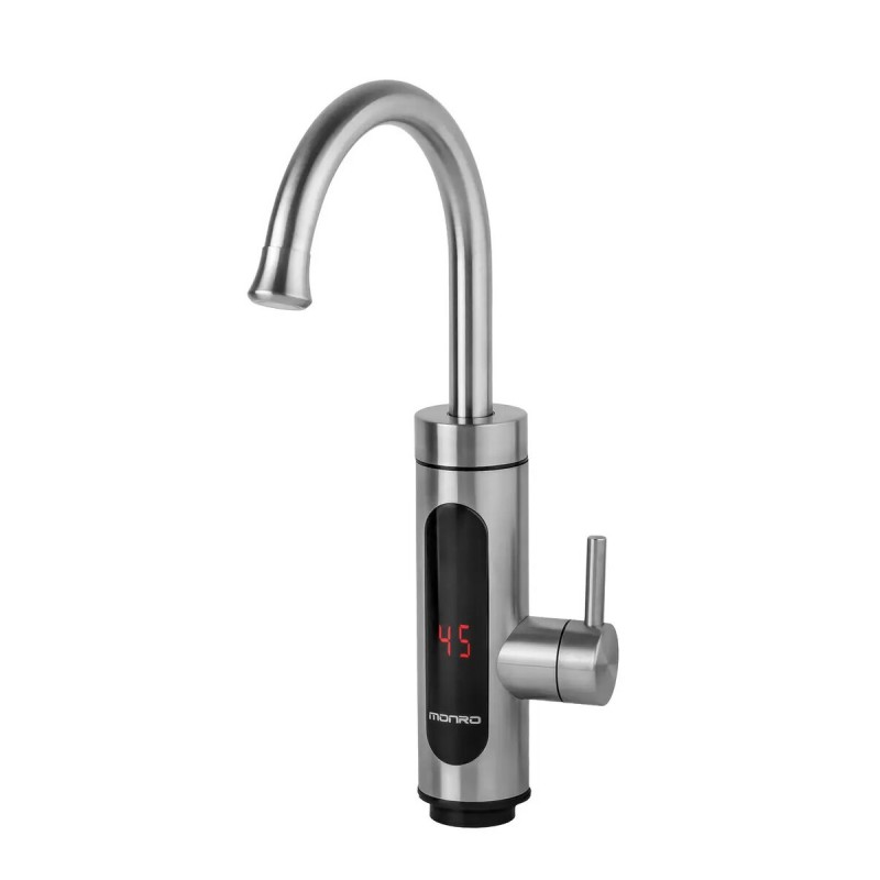 Електричний проточний водонагрівач MONRO LZ-705 SS корпус виготовлений з нержавіючої сталі, а також на корпусі є індикатор температури гарячої води. Він мінімізує витрату води, забезпечує швидке нагрівання води, легко встановлюється, заощаджує місце та енергію.