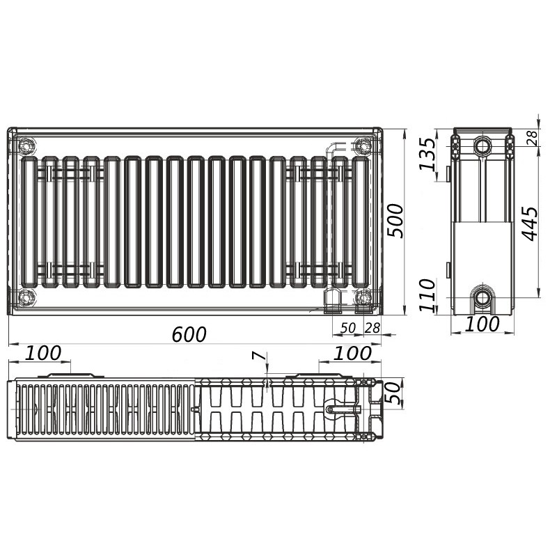 Радіатор сталевий 22/500x600 низ-справа/бок KALITE (без клапана OUTER)