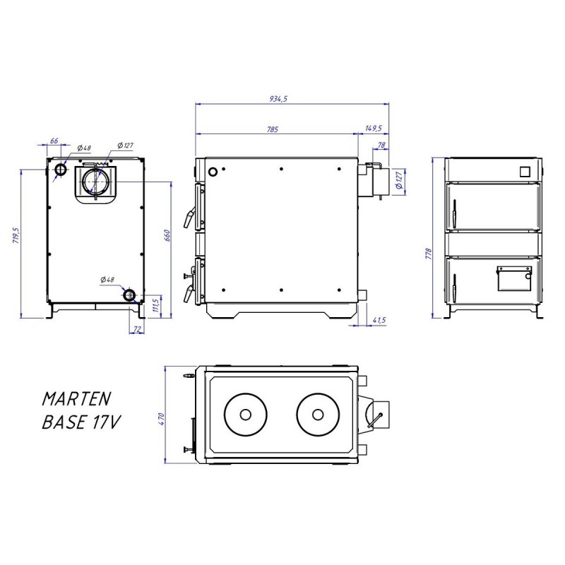 Технічні характеристики твердопаливного котла Marten Base MB-17V: