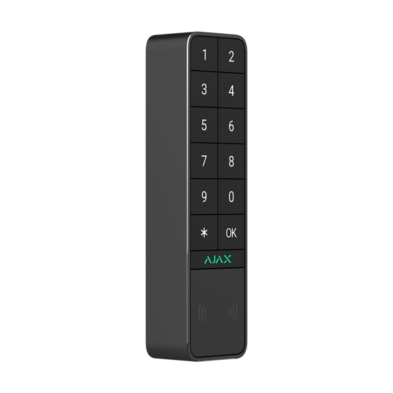Бездротова клавіатура з можливістю зовнішнього встановлення; дальність зв'язку до 1700 м; протокол Jeweller; керування: коди / брелоки Tag / картки Pass / зі смартфона через Bluetooth; 50 персональних кодів доступу / 50 кодів незареєстрованих користувачів / 50 персональних кодів примусу / 1 код клавіатури; функціональна кнопка, працює в одному з режимів: тривога / глушіння пожежної тривоги / вимкнено; звукова та світлодіодна індикація; живлення 2 попередньо встановлені батареї CR123A, до 2 років роботи, або зовнішнє DC 12 В; клас захисту IP66; корпус з нержавіючої сталі; розміри 170 / 45 / 31 мм, вага 258 г