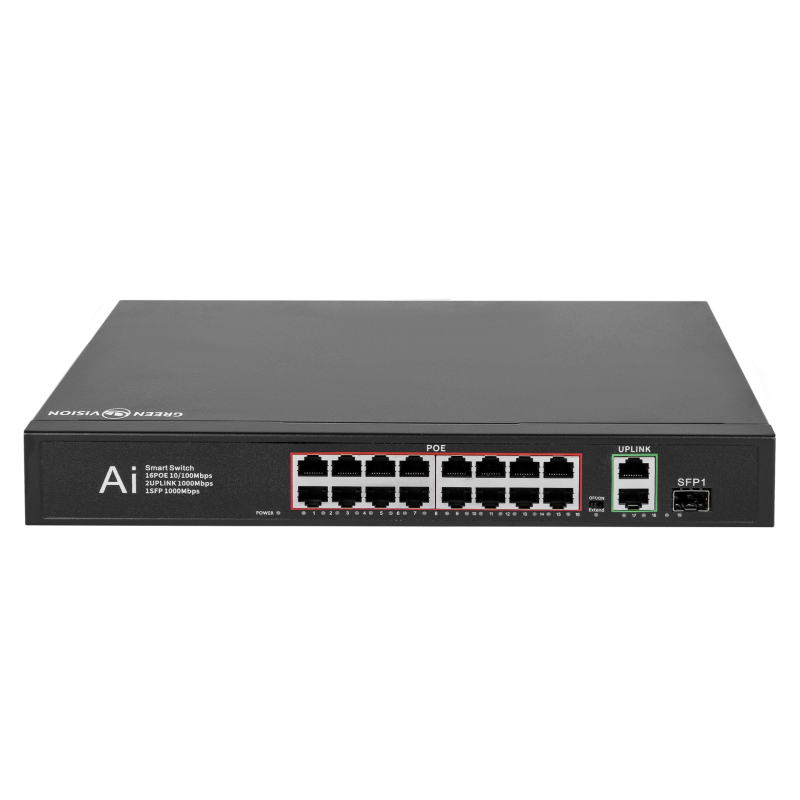 Коммутатор сетевой POE GV-010-D-16+2 PG+1 SFP 16 портов 10/100 Мбит с POE. Поддержка IEEE802.3AT/AF, 2 порта UP-Link 10/100/1000 Мбит и 1 порт SFP 10/100/1000 Мбит.