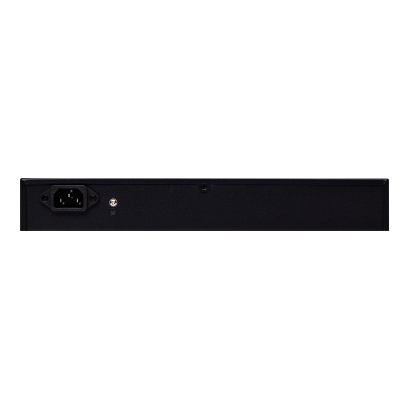Передача данных и питания на расстоянии 100 метров. Встроенный источник питания AC 100-240V, выход DC 52V- 4.8A. Выход одного порта 30W максимум. Металлический корпус. Светодиодная индикация активности портов.