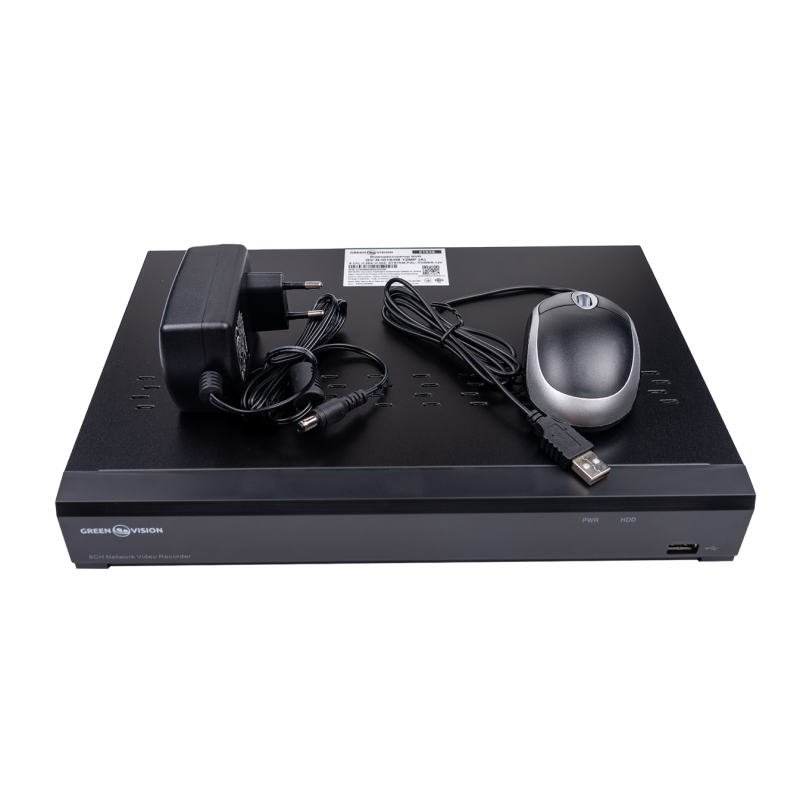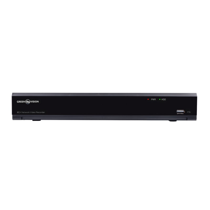Сетевой видеорегистратор ([Тип]) для [Технология передачи видео] камер GreenVision [Артикул] позволяет одновременно записывать и воспроизводить видеопотоки одновременно с [Количество каналов IP] [Технология передачи видео] камер в разрешении ([Разрешение]).