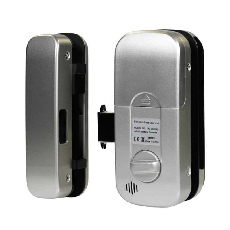 Замок біометричний автономний на скляні двері Trinix TRL-3302BG зі зчитувачем відбитків пальців і карт EM-Marine