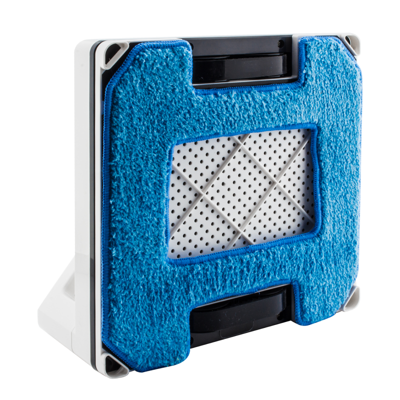 Используя вакуумную адсорбцию, робот крепится к вертикальному стеклу. Интеллектуальный алгоритм позволяет роботам избегать препятствий и автоматически чистить стекло.