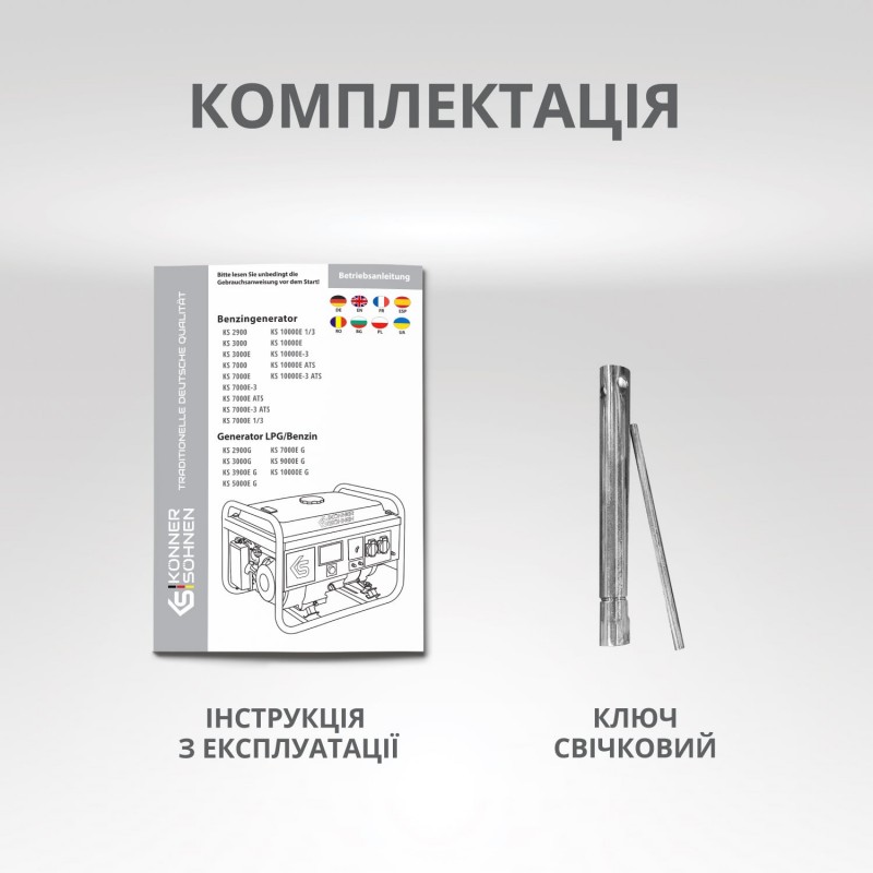 Кожний двигун має індивідуальний серійний номер, що дозволяє нам контролювати якість виробництва та сервісного обслуговування. Двигуни Könner & Söhnen вирізняються легким стартом та пониженою вібрацією. Лінійка бензинових генераторів KS 2900 оснащена надійним 1-циліндровим двигуном потужністю 6.5 к.с.