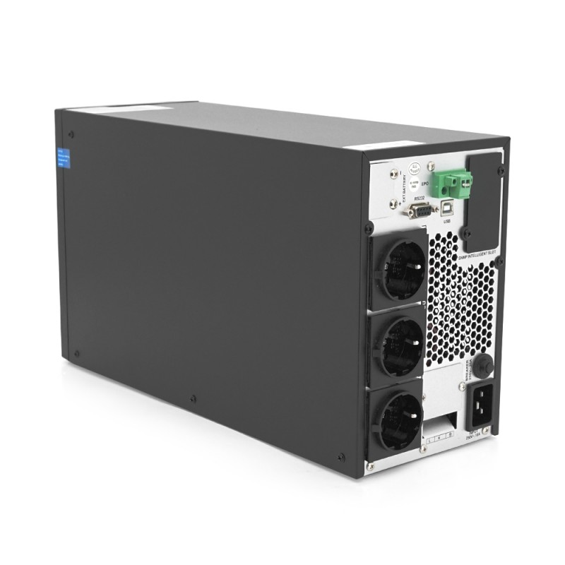 Характеристики: • Номинальная мощность: 3000VA (2700Вт) • Коэффициент мощности: 0,9 • Тип выходного сигнала: правильная синусоида • Тип индикации: дисплей • Входное напряжение: 140 ~ 290 V AC • Частота: 40 -70 Hz • Выходное напряжение: 220V: 220V AC ± 5% • Выходная частота: 47-53 Hz или 57 -63 Hz • Выходное напряжение при работе от батареи: 220V AC ± 1% • Частота при работе от батареи: 50±0.2 Hz • Время переключения от батареи: DC to AC 0 мс • Время переключения в сети транзит: AC to AC 4 мс • Напряжение батарей для подключения ИБП: 96 В • Ток заряда: 5А (Максимальный) • Рекомендуемая емкость аккумуляторов 33-65 Ач. • Время заряда батареи: 8 часов (90% емкости) • Защита от короткого замыкания: есть • Аварийное отключение (защита от перегрузки): есть • Защита от полного разряда батареи: есть • Интерфейсы: - RS-232: есть - SNMP: опционально - USB: есть • Защита линий связи: есть • Звуковая индикация: есть • Тип индикации: Дисплей • Внутренняя батарея: - • Кабель для подключения внешних батарей: есть • Количество подключения наружной батареи: 8 шт • Тип предохранителя: термический • Количество розеток Schuko: 3 шт • Клемма для подключения: 1 • Тип корпуса: металл • Цвет черный • Рабочая температура: 0 – 45 С, влажность не более 90% без конденсата • Размер устройства (Д*Ш*В), мм: 405*190*325 • Размер упаковки (Д*Ш*В), мм: 510*295*455 • Вес: 10 кг • Вес в упаковке: 11,5 кг