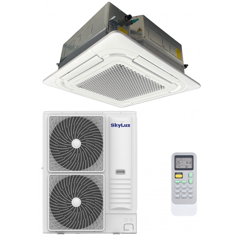 Касетний кондиціонер SkyLux Sky Inverter R32 Heat Pump – це високоефективна кліматична система з тепловим насосом, розроблена на заводі Hisense. Завдяки чотирипотоковому розподілу повітря, він рівномірно охолоджує та обігріває приміщення, забезпечуючи комфорт у будь-яку пору року. Елегантний дизайн робить його ідеальним рішенням для офісів, магазинів, ресторанів та інших об'єктів.