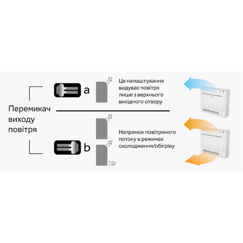 Інноваційне управління повітряним потоком дозволяє використовувати два варіанти: Верхній/Верхній + Нижній режими, щоб отримати максимально якісне кондиціонування приміщення.