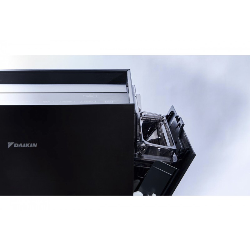 - Має ємність для води : Бак для води в DAIKIN MCK70ZH є важливою частиною цього пристрою, оскільки він використовується для постачання води для зволоження повітря в приміщенні. У очищувачі повітря розміщений місткий бак об'ємом 3,4 літра . Він виготовлений у вигляді зручного відсіку, який легко заповнити водою. У ємності розташований стрижень з іонами срібла, що запобігає появі бактерій.
