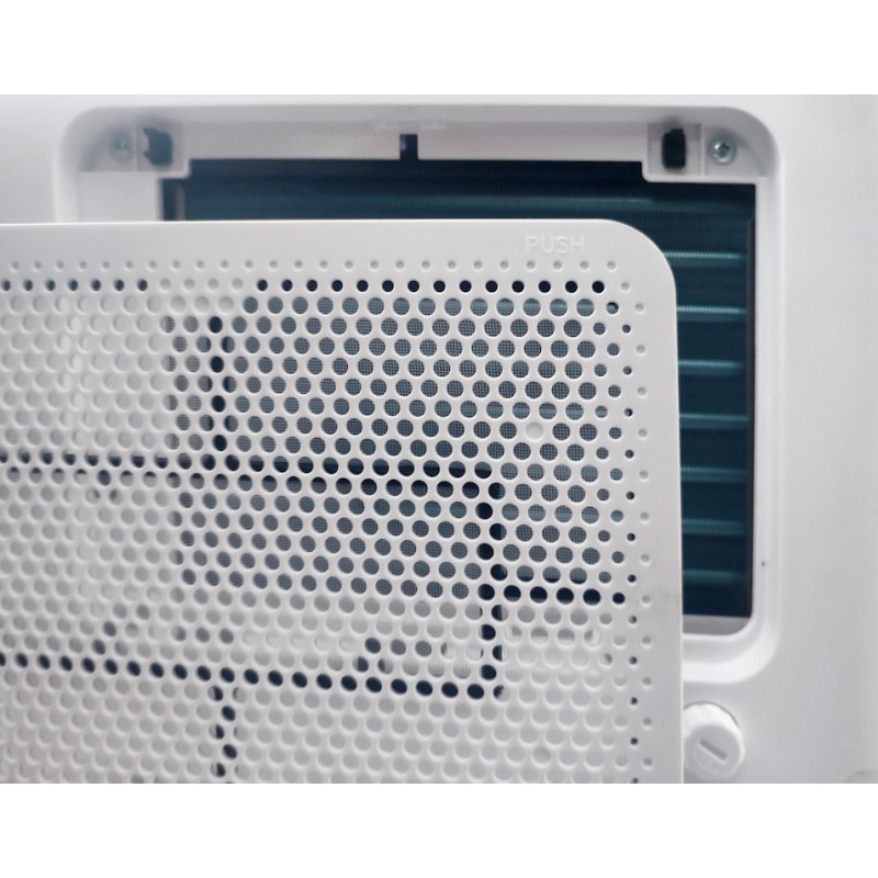 Знімний фільтр легко розбирається та очищається від пилу. Через патрубок ззаду корпусу можна підключити шланг безперервного зливу конденсату.