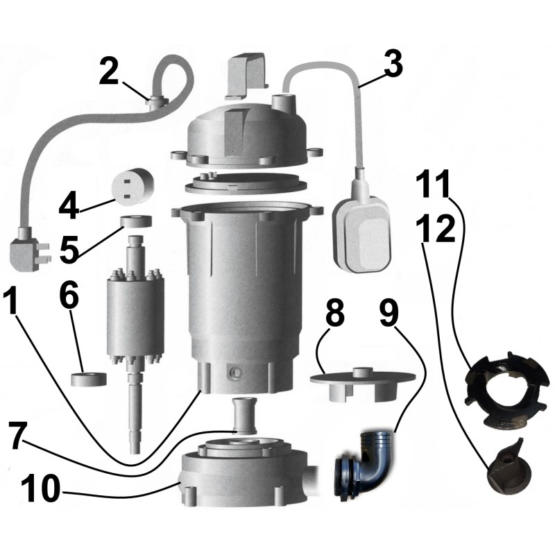 Конструктивні особливості: Корпус насосної частини і робоче колесо виготовлено з чавуну. Надійність елементів ущільнювачів фекального насоса повністю ізолює електродвигун від контакту з рідиною, що перекачується і захищає від надлишкових тепла і вологи. Наявність таких особливостей, як подвійне торцеве ущільнення валу в маслозаповненій камері і маслонаповнений двигун, гарантують охолодження насоса навіть у разі його занурення в рідину менш ніж на половину. Робоче колесо з ріжучим механізмом дозволяє подрібнювати різноманітні відходи, які транспортуються зі стічними водами- шматки тканини, шнури і ін. Також насос обладнаний поплавковим вимикачем, що забезпечує роботу насоса в автоматичному режимі. Напруга мережі: 230V - 50Hz. Вбудоване термозахисне реле