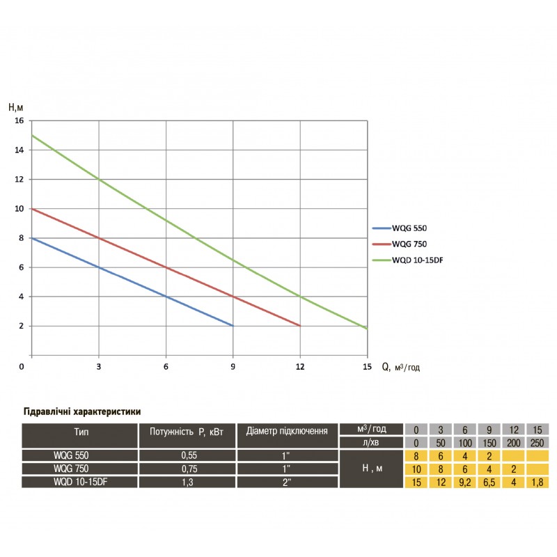 Загальні характеристики: • Потужність: 1,3 кВт • Максимальний напір: 15 м • Максимальна продуктивність: 10 м3 / год • Наявність поплавкового вимикача • Максимальна температура рідини: 40 ° С. • Матеріал корпусу насоса і робочого колеса - чавун • Робоче колесо типу VORTEX • Діаметр під'єднання - 2 ″ • Максимальна густина рідини: 1100 кг / м3. • Максимальна глибина занурення: 5 м. • Вага в упаковці - 16.4 кг • Вага насоса - 15.6 кг • Габарити упаковки (ВхШхГ) - 47х29х24 см