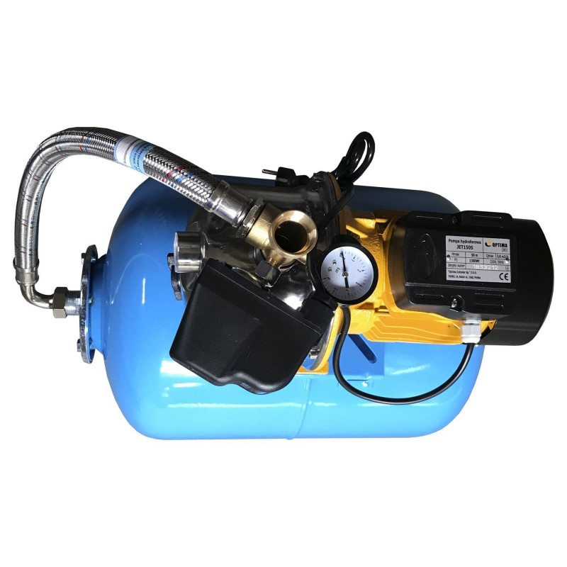 Комплектуючі: - Насос відцентровий Optima JET150S 1,3 кВт нержавійка - Гідроакумулятор - 50 літрів. - Шланг антивібраційний кутовий LG27 (HS3002) 1 ″нв 0,6 26мм - Кабель з євровилкою і клемами 1,5 м - Гребінка 5-ти ходова 80мм (пятірник) - Реле тиску PM-5 - Манометр 6 атм. 50мм сталевий корпус
