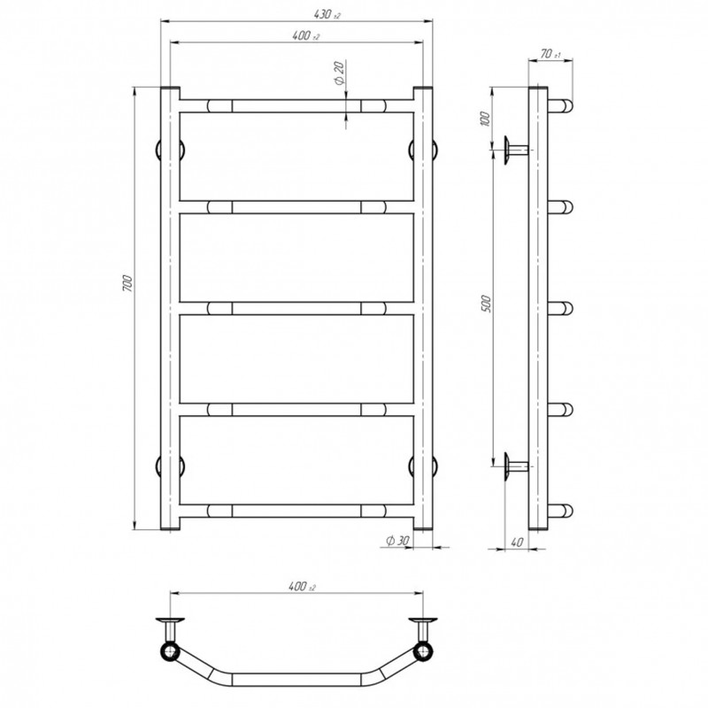 Рушникосушарка UNIO LT EU 700-400-5 Драбинка Трапеція електро