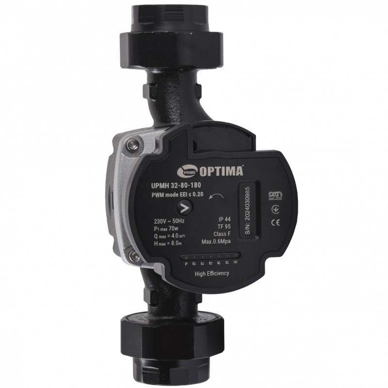 Optima Prime UPMH 32-80AUTO 180мм - призначений для циркуляції гарячої води в системах опалення, з постійною або змінною витратою води, а також систем зі змінним показником температури в напірному трубопроводі. Насос призначений для перекачування води і чистих, малов'язких, неагресивних і невибухонебезпечних рідин.