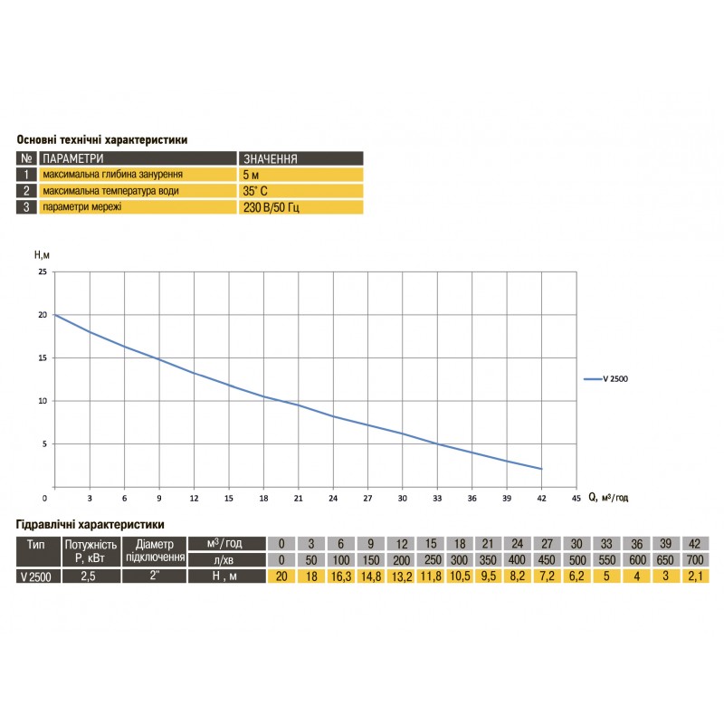 Країна виробник - Польща Гарантія - 2 роки загальні характеристики • Потужність: 2,5 кВт • Максимальний напір: 20 м • Продуктивність: 42 м3 / год • Максимальна температура рідини: 40 ° С. • Максимально допустимий розмір часток у воді 55 мм. • Матеріал корпусу насоса - нержавіюча сталь • Матеріал робочого колеса - чавун • Діаметр патрубка - 3 ″ • Максимальна густина рідини: 1100 кг / м3. • Максимальна глибина занурення: 5 м. • Вага в упаковці - 31,3 кг • Габарити упаковки (ВхШхГ): 47х27х22 см