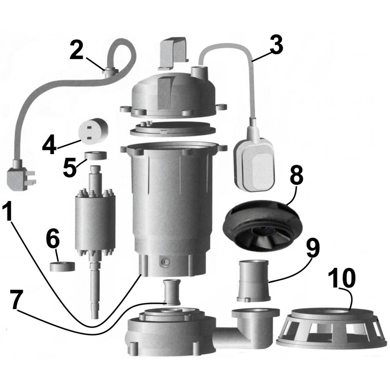 Двигун • Короткозамкнений асинхронний з корпусом з нержавіючої сталі і вбудованим термозахистом. • Обмотка двигуна з алюмінію. • Клас ізоляції обмоток F. • Ступінь захисту IP68. • Кількість обертів 2850 об / хв. • Напруга однофазна 1х230В - 50Гц.