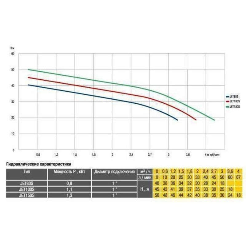Технічні характеристики: • номінальна потужність двигуна - 1,1 кВт • необхідне напруга - 220В ± 5%, 50Гц • максимальна глибина всмоктування - 9 м • максимальна висота напору - 45 м • максимальна продуктивність - 3,6 м3 / год (60 л / хв) • максимальна температура води - 40 * С • діаметр підключення-1 ″ • вага в упаковці - 19.45 кг • вага станції - 17.14 кг • габарити упаковки (ВхШхГ) - 71х65х40 см