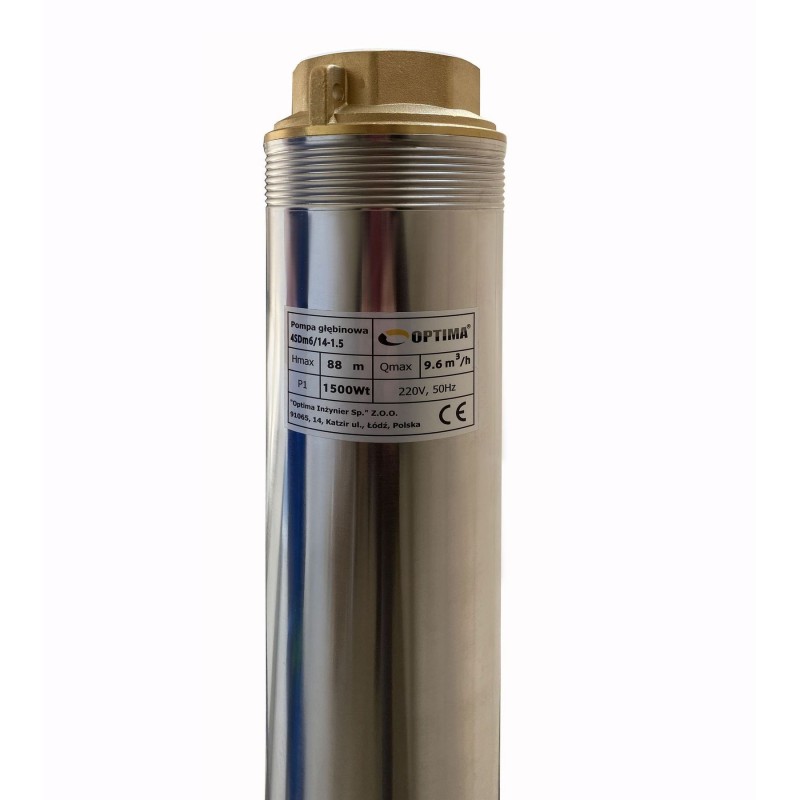 Насос свердловинний з підвищеною стійкістю до піску OPTIMA 4SDm6 / 14 1.5 кВт 88м з пультом, чотирнадцять робочих коліс Кабель - 15 метрів У нових моделях свердловинних насосах OPTIMA за рахунок підвищення кількості робочих кілець збільшені максимальний напір і максимальна продуктивність. Виробник - Польща Гарантія - 2 роки Насос свердловинний з підвищеною стійкістю до піску OPTIMA 4SDm6 / 14 1.5 кВт 88м діаметром 4 ″призначений для подачі води з свердловин (діаметром від 4″ або 101 мм) і відкритих водойм з глибиною більше ніж 9 м, коли використання поверхневого насоса неможливо або недоцільно.