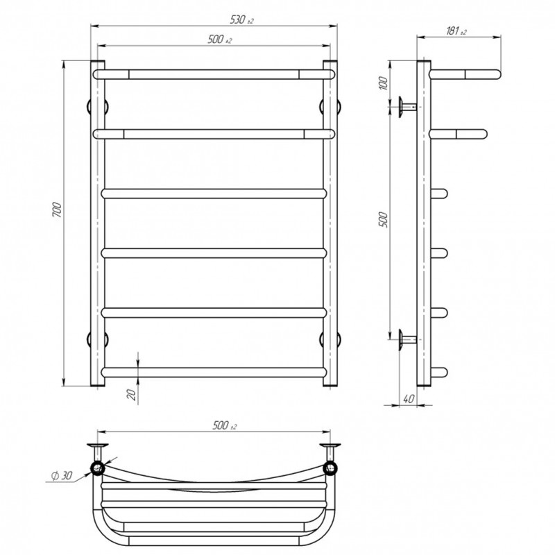 Рушникосушарка UNIO Модель: Каскад Скоба з полицею (електрична, з вбудованим цифровим регулятором температури, шнур 1м) Код: KSp EU 700-500-5