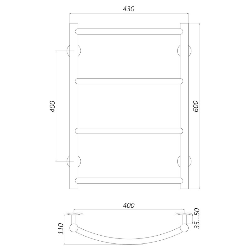 Рушникосушарка UNIO LD W 600-400-4 Драбинка Дуга вода