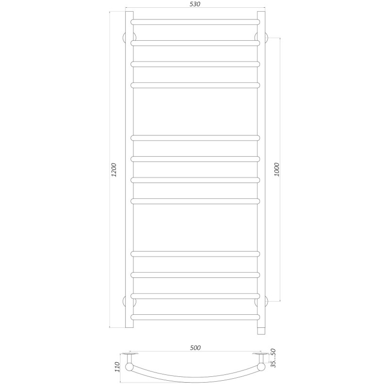 Рушникосушарка UNIO LDE EL 1200-500-12 BLK Драбинка Дуга Еліт електро чорна
