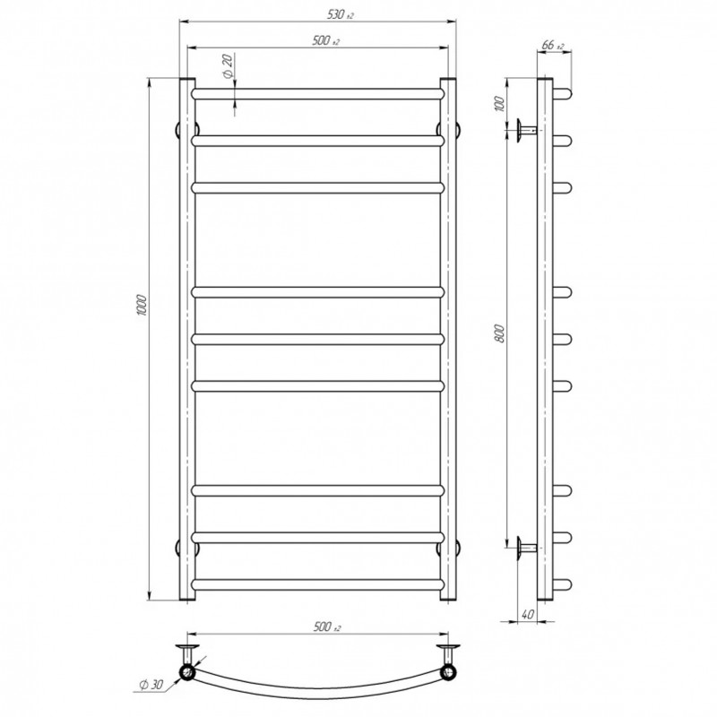 Характеристики: Матеріал - нержавіюча сталь Висота - 1000 мм Ширина - 500 мм Кількість перемичок - 9 Електронний регулятор температури - Так Таймер відключення - Так Шнур живлення - 1м Живлення - 220 В / 50 Гц Потужність - 230 Вт Ступень захисту - ІР44 Температура зовнішньої поверні виробу - 50 ± 10 °С Колір - чорний матовий (RAL 9005)