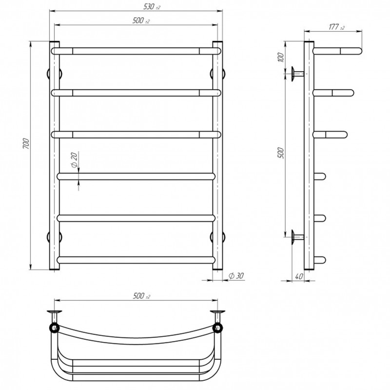 Характеристики: Матеріал - нержавіюча сталь Висота - 700 мм Ширина - 500 мм Кількість перемичок - 6 Електронний регулятор температури - Так Таймер відключення - Так Шнур живлення - 1м Живлення - 220 В / 50 Гц Потужність - 190 Вт Ступень захисту - ІР44 Температура зовнішньої поверні виробу - 50 ± 10 °С