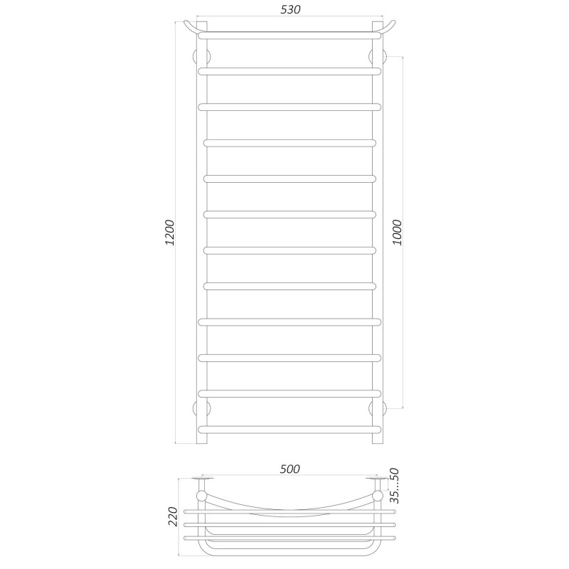 Рушникосушарка UNIO Модель: Зета (з полицею, водозаповнена) Код: Zp W 1200-500-12
