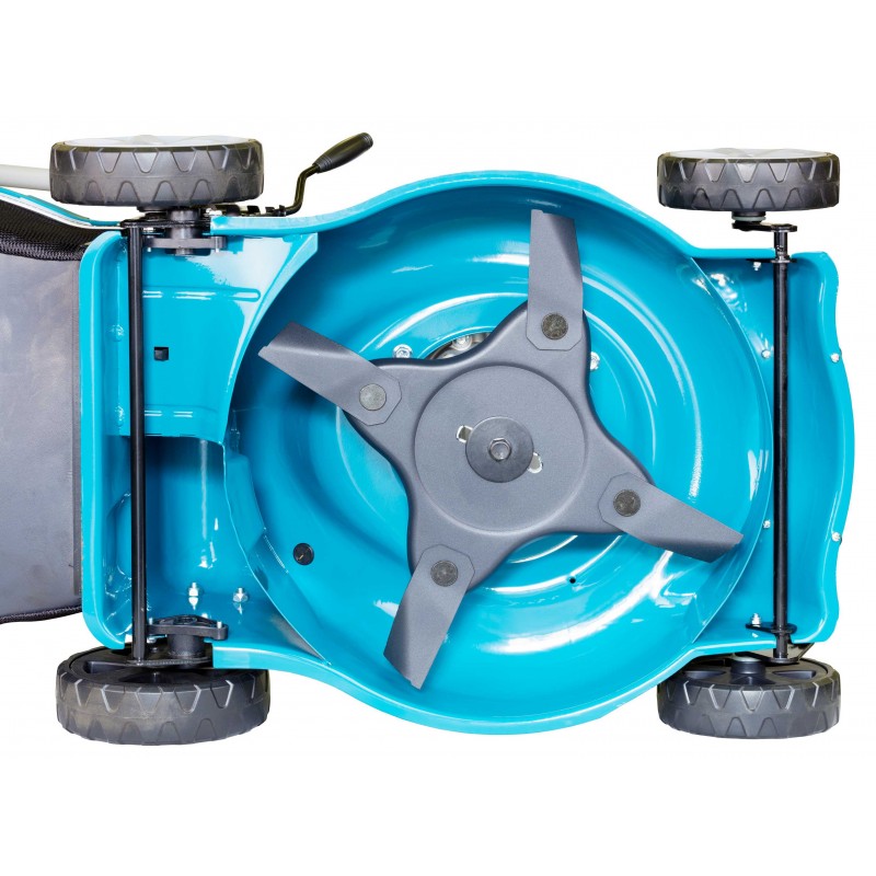 Особливості Центральне регулювання висоти косіння дозволяє легко і швидко встановити необхідну висоту зрізу трави. Травозбірник. Місткий і легкий травосборник з синтетичної нитки об'ємом 60 літрів, дозволяє довше працювати без перерви на очистку. Легке кріплення для знімання і установки травозбірника однією рукою. 4-лопатевий ніж. Ніж виконаний з високоміцної сталі і має яскраво виражені закрилки для створення потужного вихрового потоку, що дозволяє збирати більше скошеної трави і доводити наповнюваність травозбірника до 100%. Комплектацiя Газонокосарка; Упаковка; Гарантійний талон; Інструкція; Комплект для монтажу.