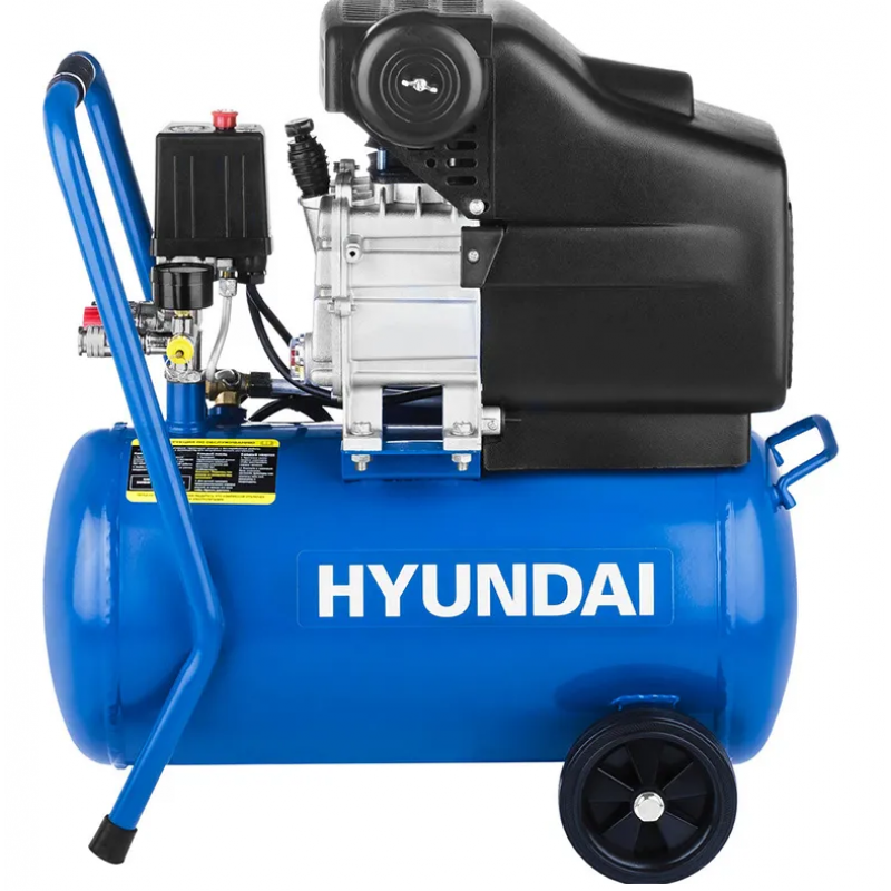 Повітряний поршневий масляний компресор Hyundai HYC 2324U Повітряний поршневий масляний компресор Hyundai HYC 2324U оснащений ресивером об’ємом 24 літри та працює з робочим тиском 8 Атм. Регулювання тиску в ресивері здійснюється автоматично, що забезпечує стабільну та безпечну роботу обладнання. Підвищена продуктивність досягається завдяки одному поршню збільшеного діаметра (46 мм). Для посилення конструкції блок циліндра виготовлений з литого чавуну, а алюмінієві головки забезпечують ефективніше охолодження. Додатково передбачені великі охолоджувальні ребра, що покращують тепловідвід. Компресор оснащений системою візуального контролю рівня масла, що полегшує обслуговування. Центральне розташування поршневої групи забезпечує рівномірний розподіл навантаження та знижує рівень вібрації під час роботи. Продуктивність по повітрю становить 230 л/хв, яку забезпечує електродвигун потужністю 1500 Вт. Масляний компресор Hyundai HYC 2324 рекомендовано для виконання нескладних робіт: накачування шин, продувки магістралей, а також фарбувальних робіт із використанням фарбопульта.