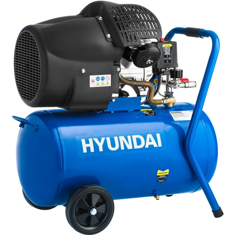 Повітряний компресор Hyundai HYC 4050U — це поршневий масляний компресор, що призначений для подачі стисненого повітря для роботи пневмоінструменту, обладнання чи іншої техніки. Пристрій працює від мережі 230 В, має ресивер і автоматичне регулювання тиску. Основні характеристики Тип компресора: поршневий, масляний Модель: HYC 4050 Потужність: 2200 Вт Напруга: 230 В, 50 Гц Продуктивність: приблизно 400 л/хв Робочий тиск: 8 бар Об’єм ресивера: 50 л Обороти двигуна: 2850 об/хв Манометр: аналоговий Колеса: є для пересування Вага: близько 35 кг Гарантія: приблизно 12 місяців Комплектація: Компресор Повітряний фільтр 2 транспортні колеса Інструкція Упаковка